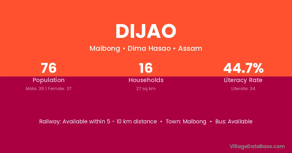Dijao village has a total population of 76 people, of which 39 are males and 37 are females.