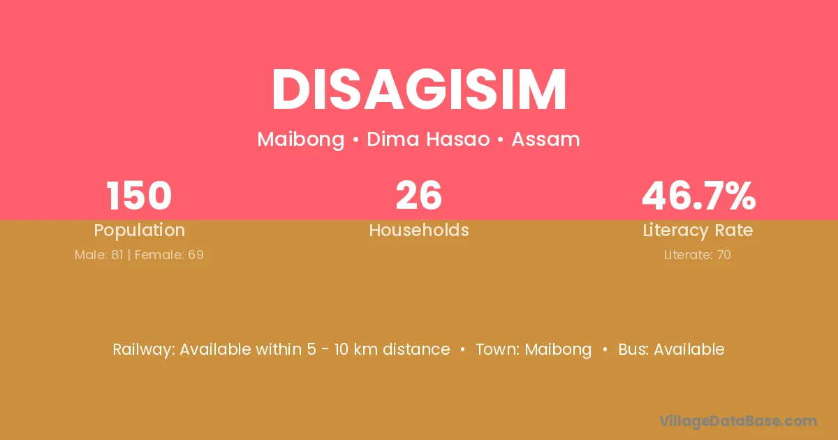 Disagisim village has a total population of 150 people, of which 81 are males and 69 are females.