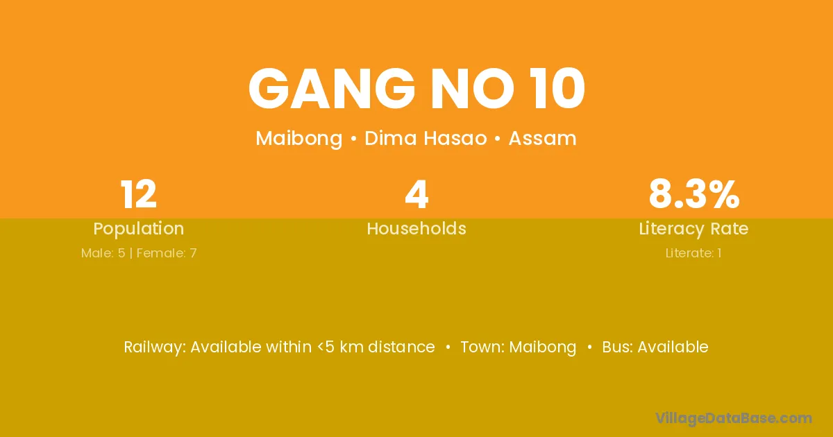 Gang No 10 village has a total population of 12 people, of which 5 are males and 7 are females.