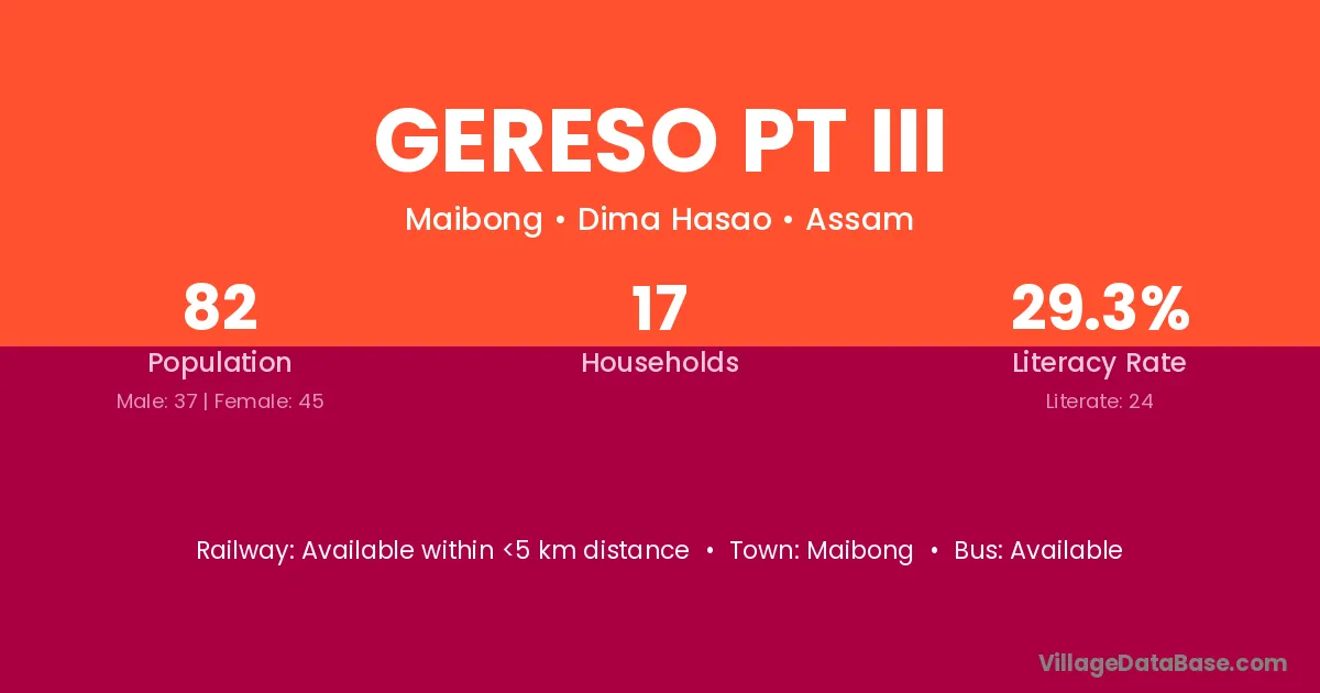 Gereso Pt Iii village is located in the Maibong Subdivision of the Dima Hasao district in Assam .