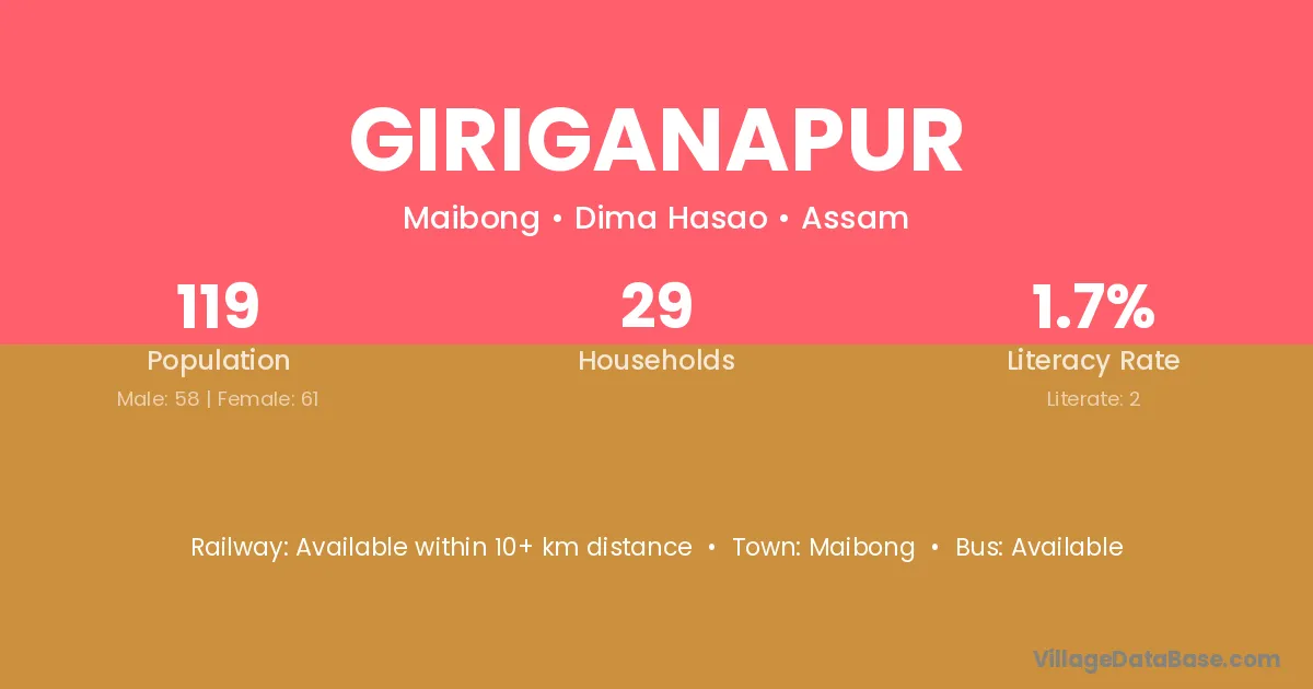 Giriganapur village has a total population of 119 people, of which 58 are males and 61 are females.