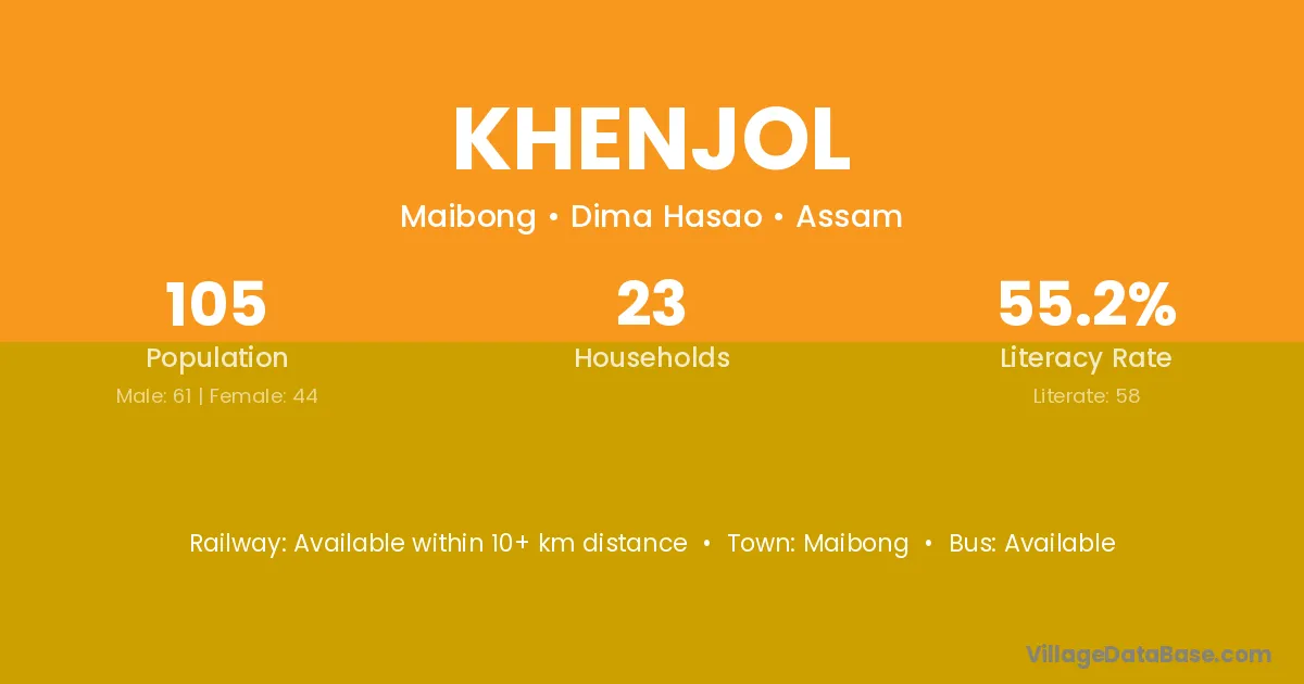 Khenjol village has a total population of 105 people, of which 61 are males and 44 are females.
