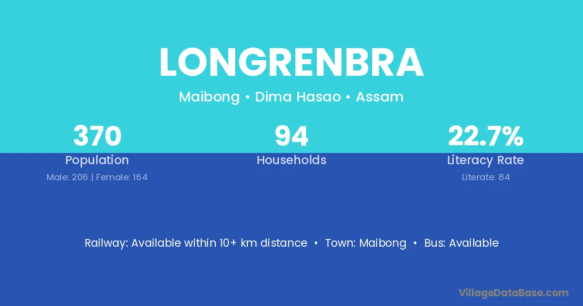 Longrenbra village has a total population of 370 people, of which 206 are males and 164 are females.