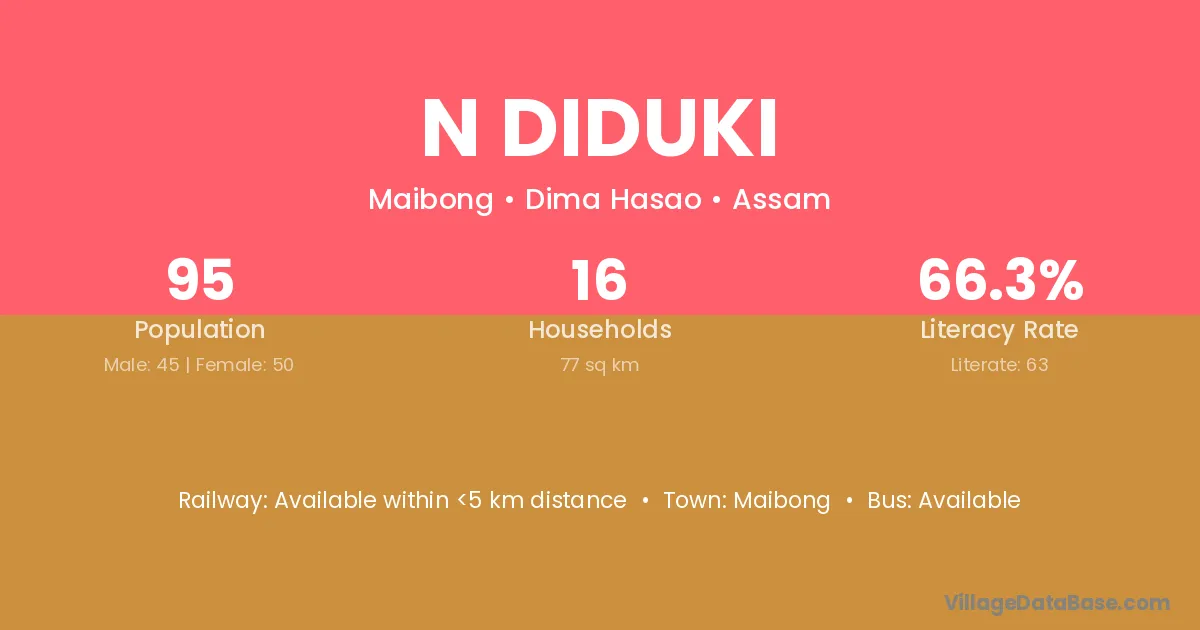 N Diduki village has a total population of 95 people, of which 45 are males and 50 are females.