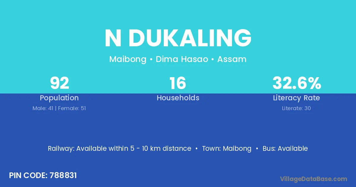 Maibong is the nearest town to N Dukaling village for major economic activities