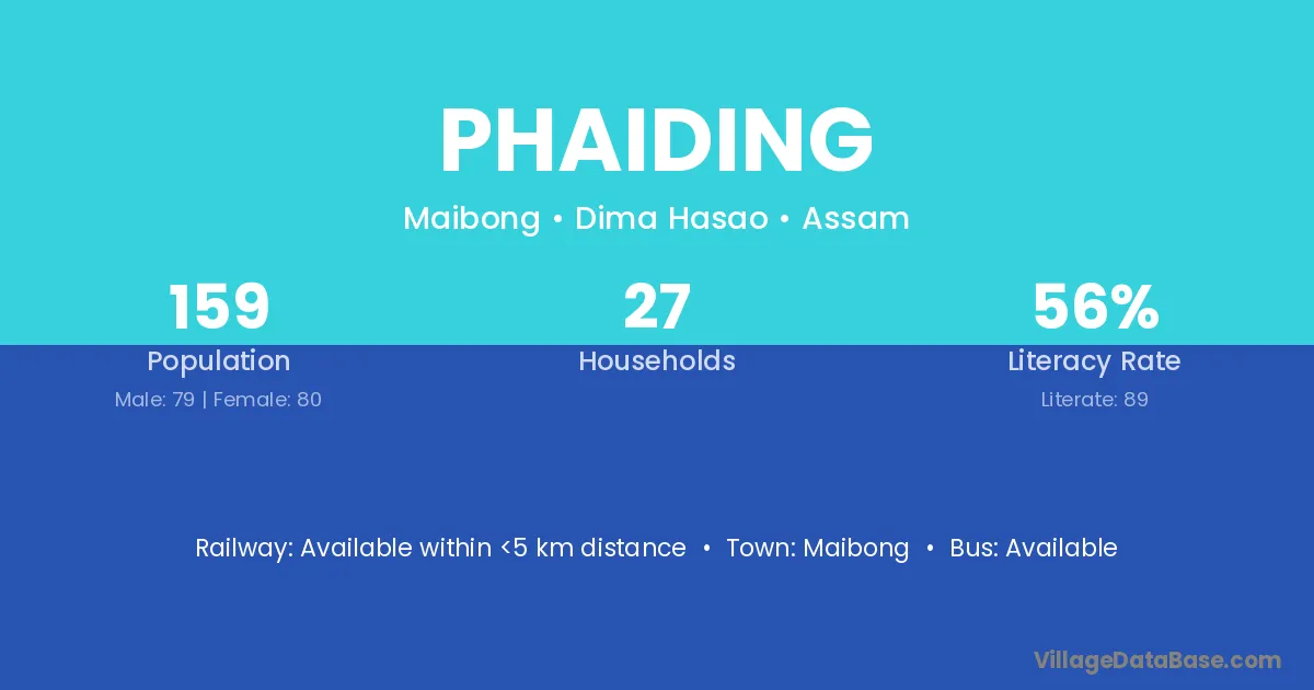 Phaiding village has a total population of 159 people, of which 79 are males and 80 are females.