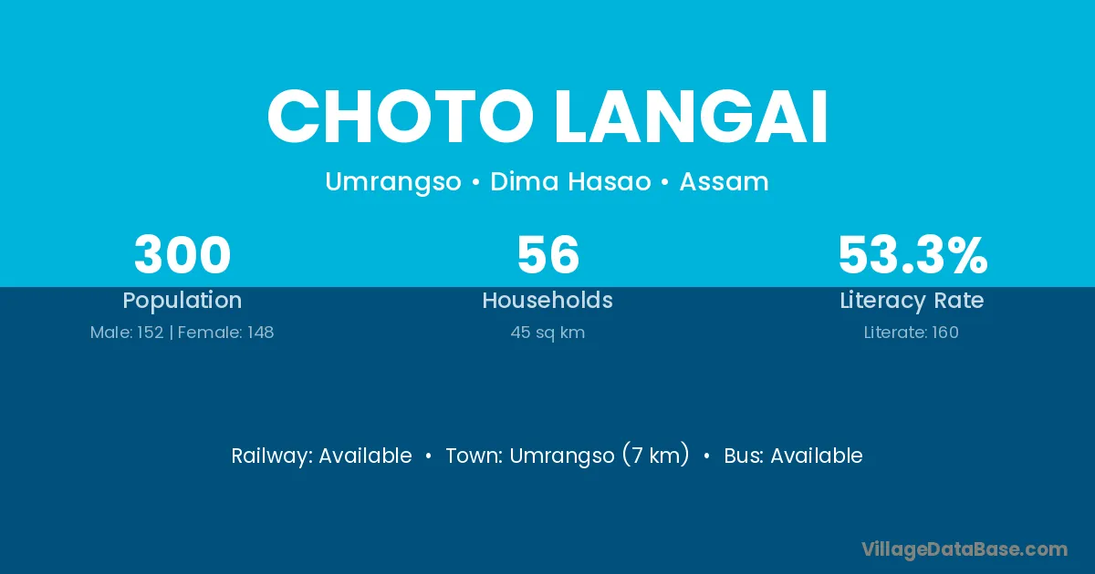 Umrangso (7 km) is the nearest town to Choto Langai village for major economic activities and is located approximately 7 km away.