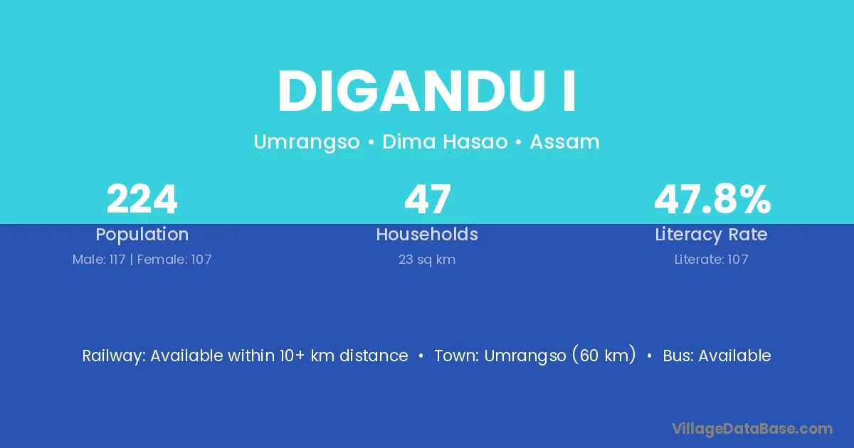 Umrangso (60 km) is the nearest town to Digandu I village for major economic activities and is located approximately 60 km away.
