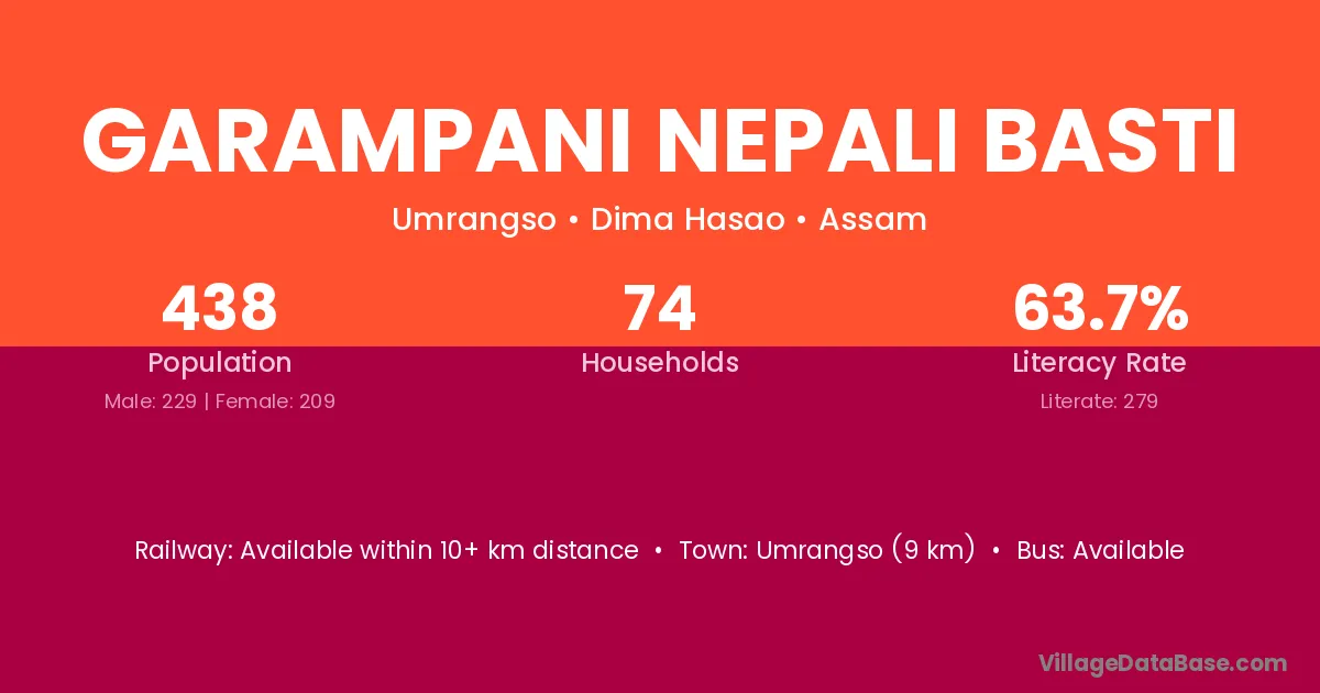 Garampani Nepali Basti village has a total population of 438 people, of which 229 are males and 209 are females.