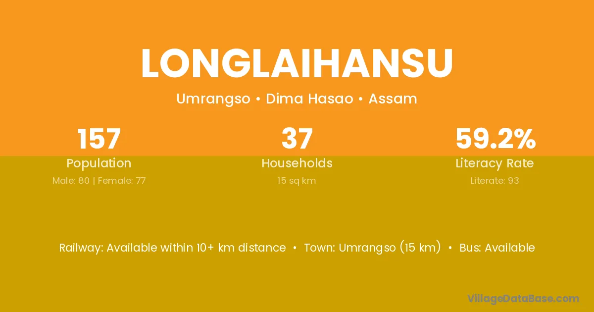 Umrangso (15 km) is the nearest town to Longlaihansu village for major economic activities and is located approximately 15 km away.