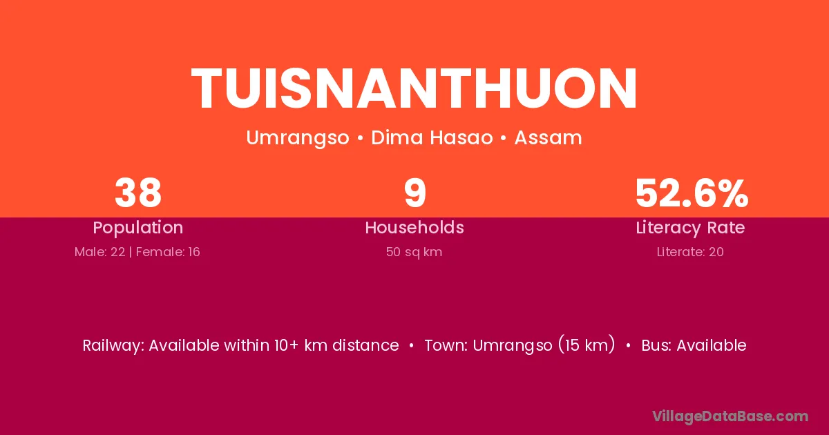 Umrangso (15 km) is the nearest town to Tuisnanthuon village for major economic activities and is located approximately 15 km away.