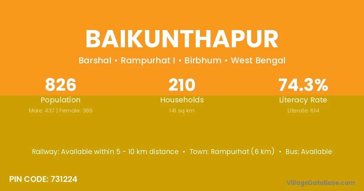 Goalpara (16 km) is the nearest town to Baikunthapur village for major economic activities and is located approximately 16 km away.