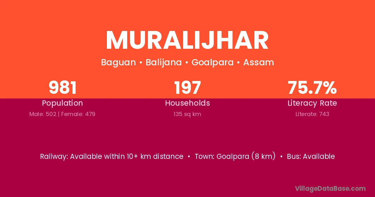 Goalpara (8 km) is the nearest town to Muralijhar village for major economic activities and is located approximately 8 km away.