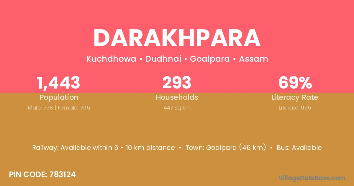 Goalpara (46 km) is the nearest town to Darakhpara village for major economic activities and is located approximately 46 km away.