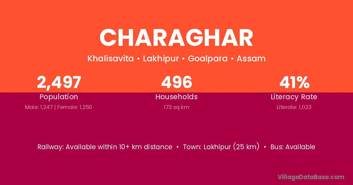Lakhipur (25 km) is the nearest town to Charaghar village for major economic activities and is located approximately 25 km away.