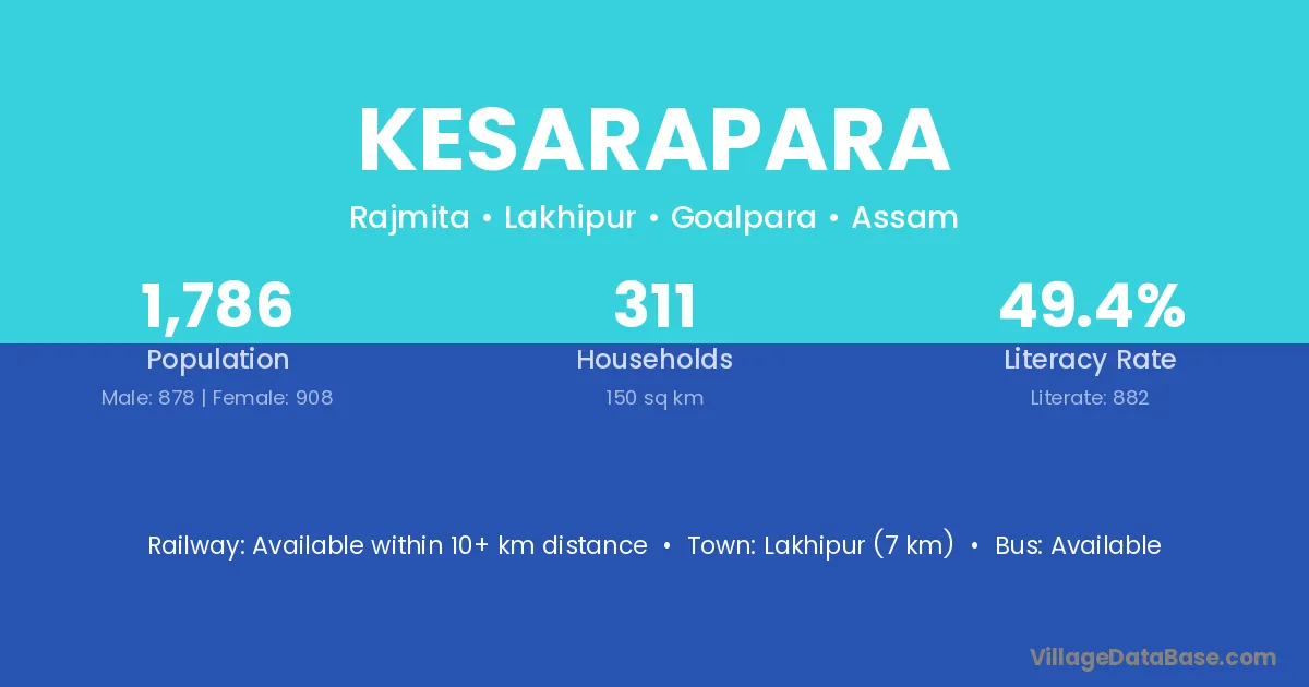 Lakhipur (7 km) is the nearest town to Kesarapara village for major economic activities and is located approximately 7 km away.
