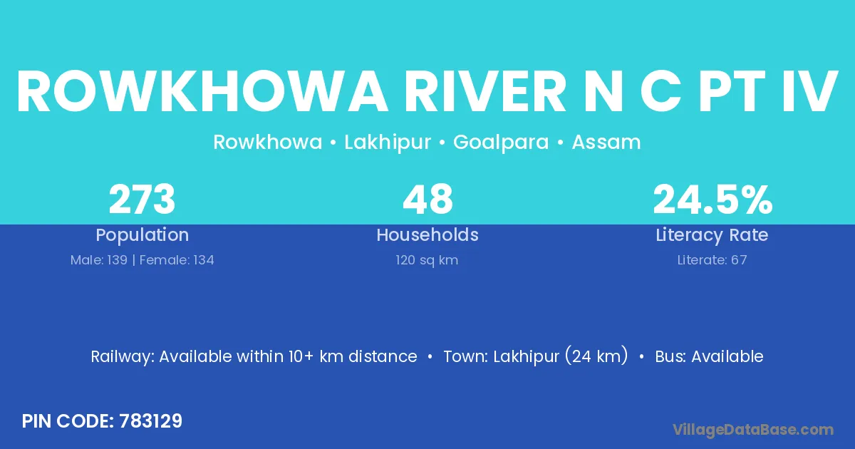 Rowkhowa River N C Pt Iv village has a total population of 273 people, of which 139 are males and 134 are females.