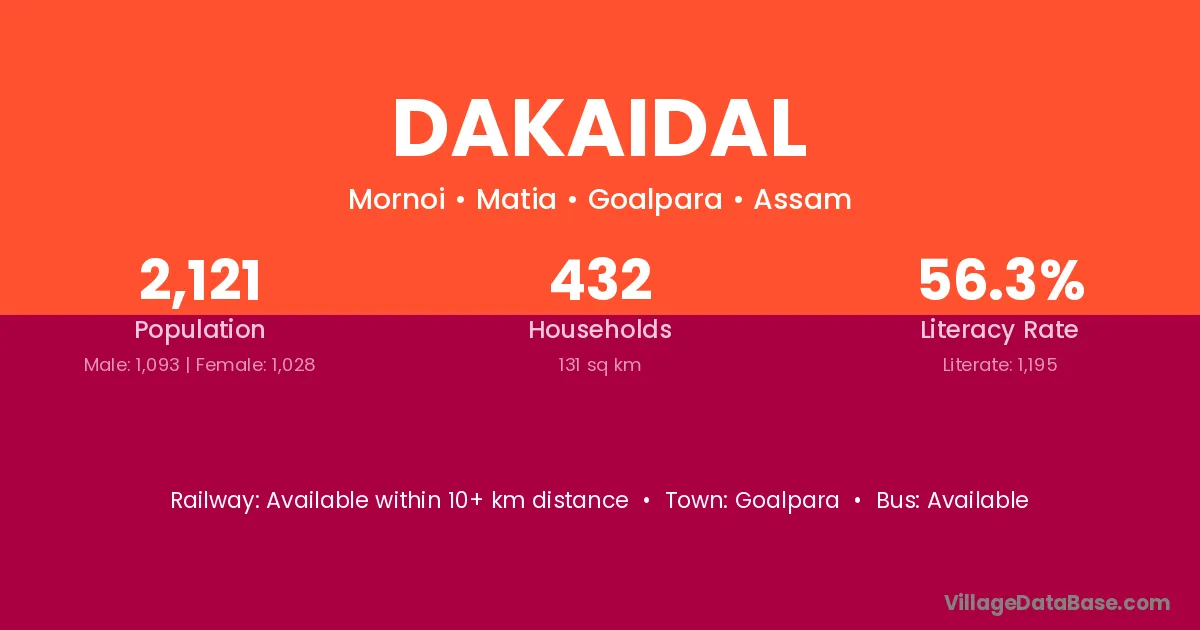 Goalpara is the nearest town to Dakaidal village for major economic activities