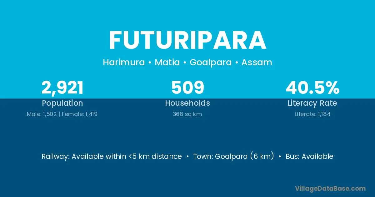 Goalpara (6 km) is the nearest town to Futuripara village for major economic activities and is located approximately 6 km away.