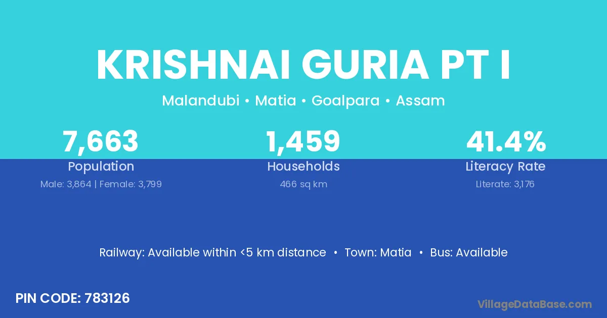Matia is the nearest town to Krishnai Guria Pt I village for major economic activities