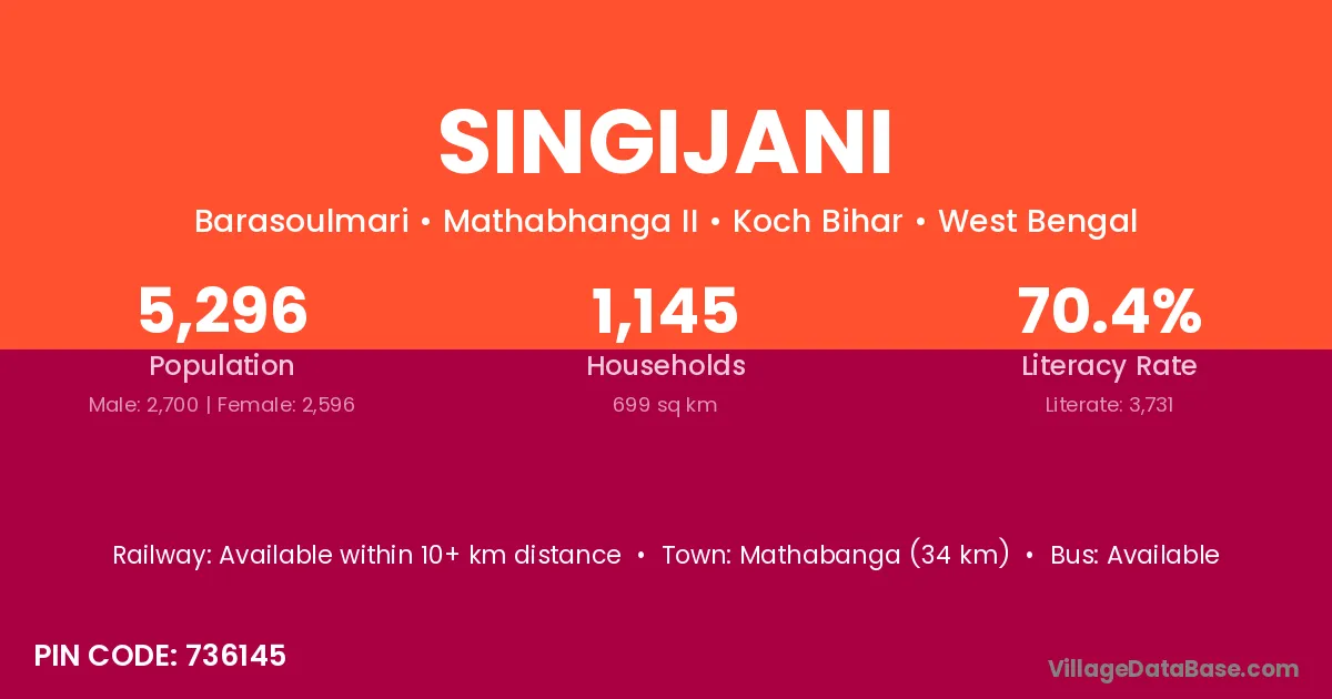 Goalpara (25 km) is the nearest town to Singijani village for major economic activities and is located approximately 25 km away.