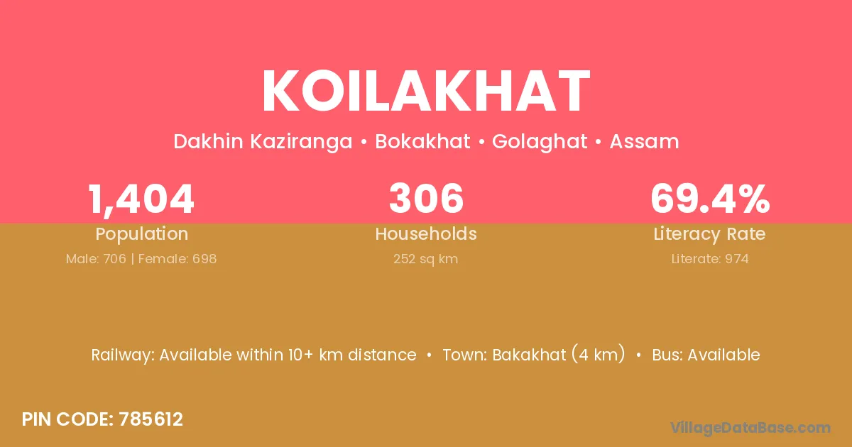 Koilakhat village has a total population of 1,404 people, of which 706 are males and 698 are females.