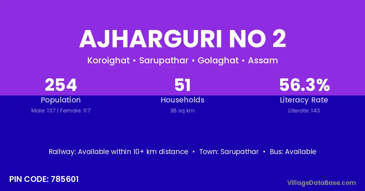 Ajharguri No 2 village has a total population of 254 people, of which 137 are males and 117 are females.