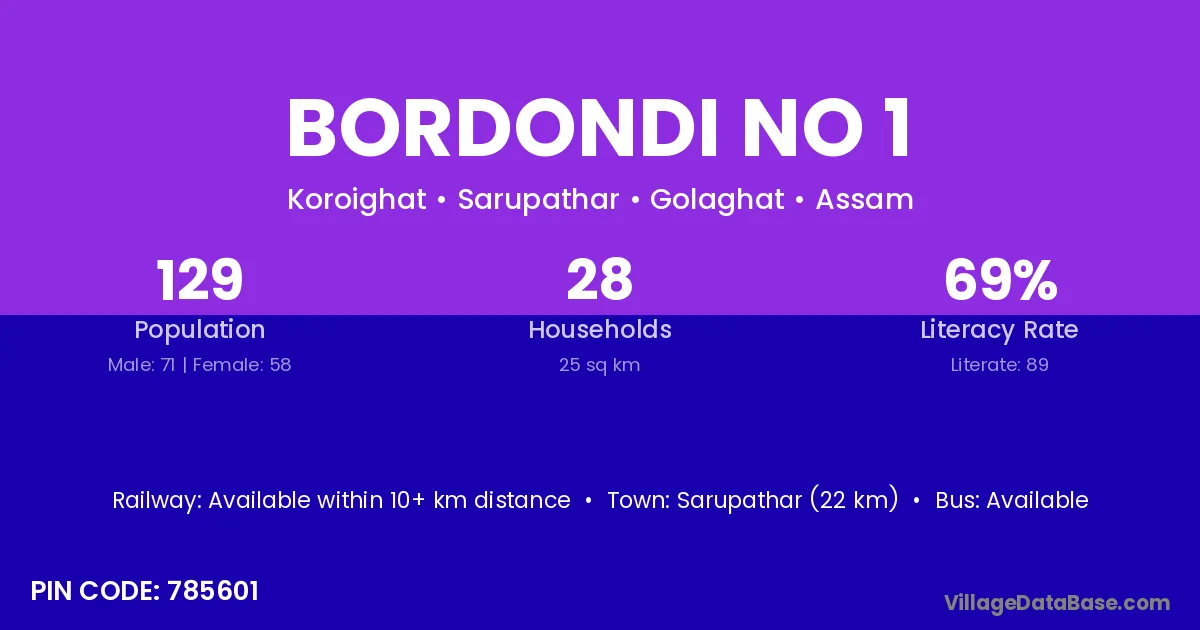 Bordondi No 1 village is located in the Sarupathar Subdivision of the Golaghat district in Assam .