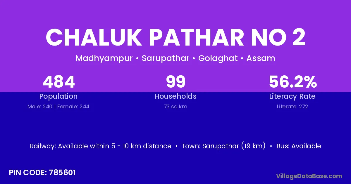 Chaluk Pathar No 2 village has a total population of 484 people, of which 240 are males and 244 are females.