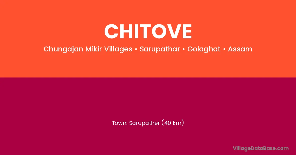 Sarupather (40 km) is the nearest town to Chitove village for major economic activities and is located approximately 40 km away.