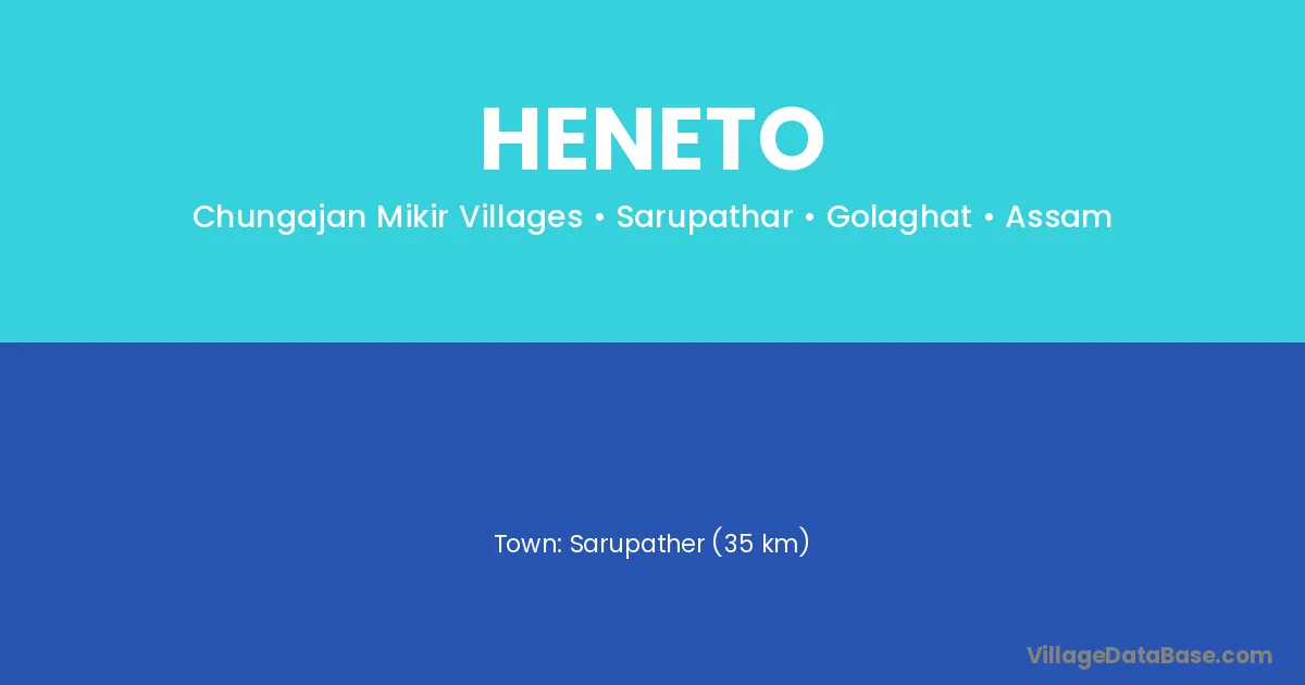 Sarupather (35 km) is the nearest town to Heneto village for major economic activities and is located approximately 35 km away.