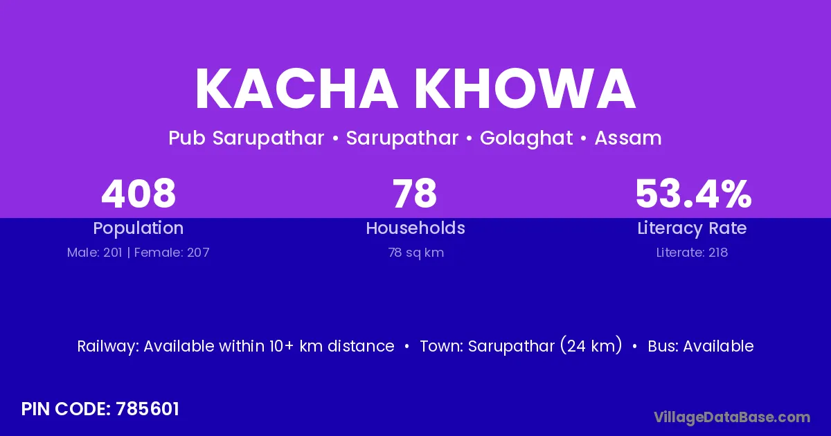 Sarupathar (24 km) is the nearest town to Kacha Khowa village for major economic activities and is located approximately 24 km away.
