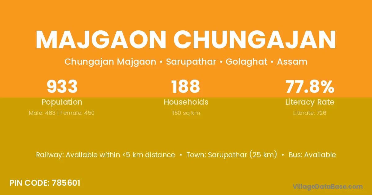 Sarupathar (25 km) is the nearest town to Majgaon Chungajan village for major economic activities and is located approximately 25 km away.