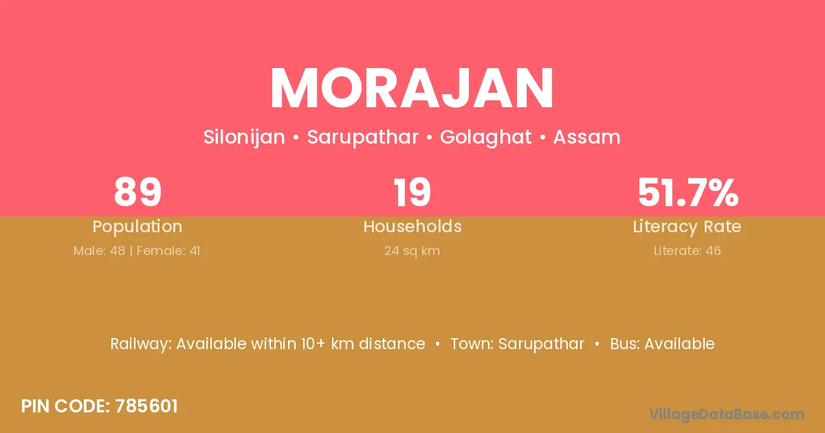 According to Census 2011 information, the village code of Morajan village is 785601.