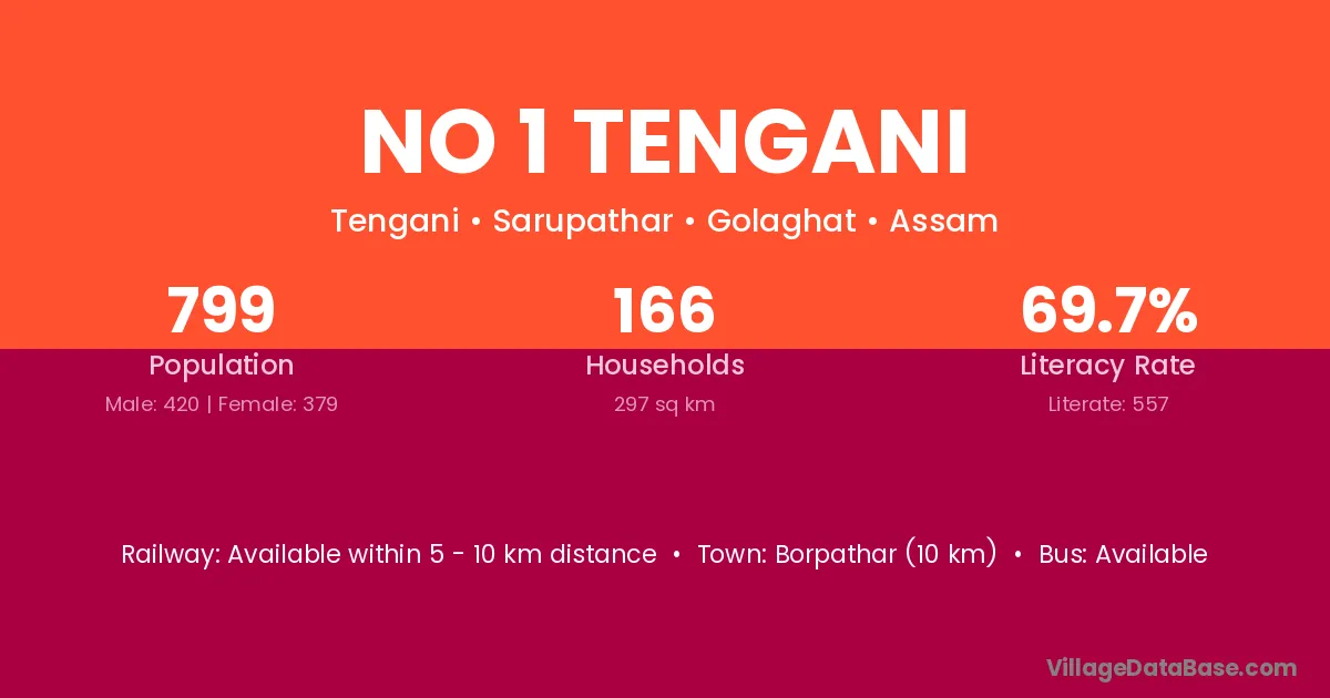 Borpathar (10 km) is the nearest town to No 1 Tengani village for major economic activities and is located approximately 10 km away.