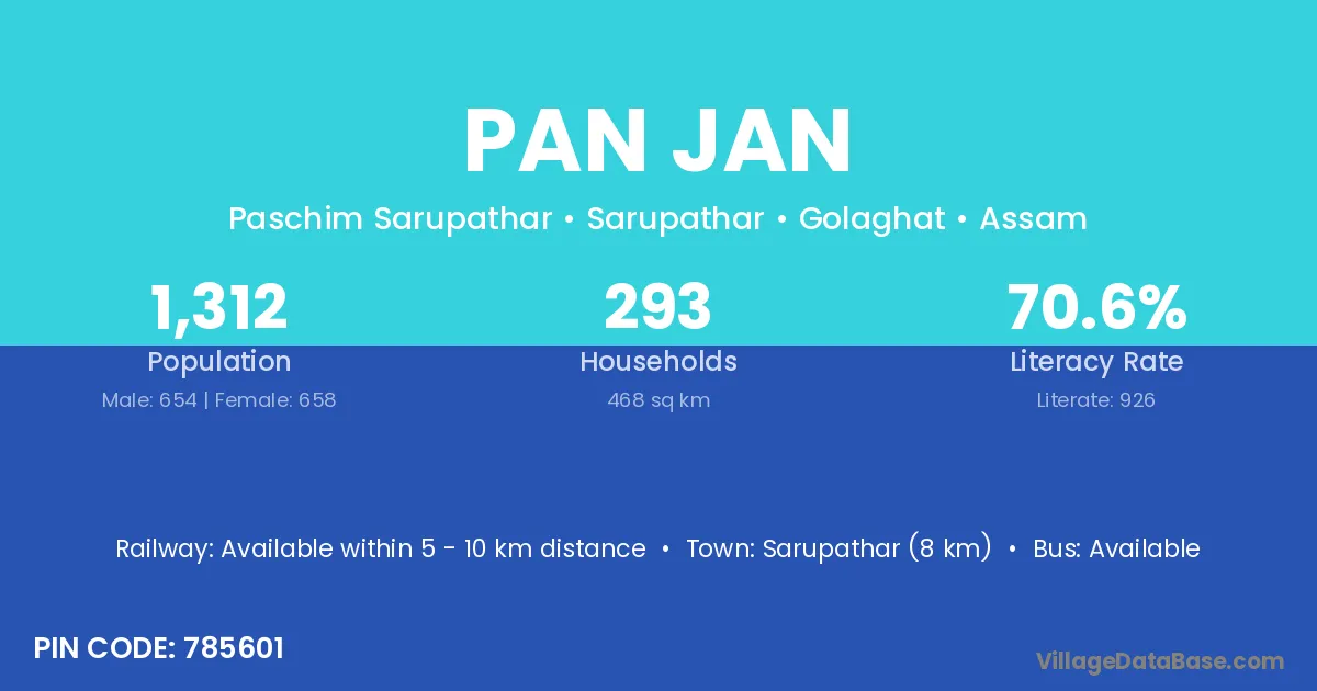 Sarupathar (8 km) is the nearest town to Pan Jan village for major economic activities and is located approximately 8 km away.
