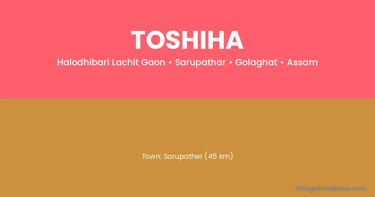 Sarupather (45 km) is the nearest town to Toshiha village for major economic activities and is located approximately 45 km away.