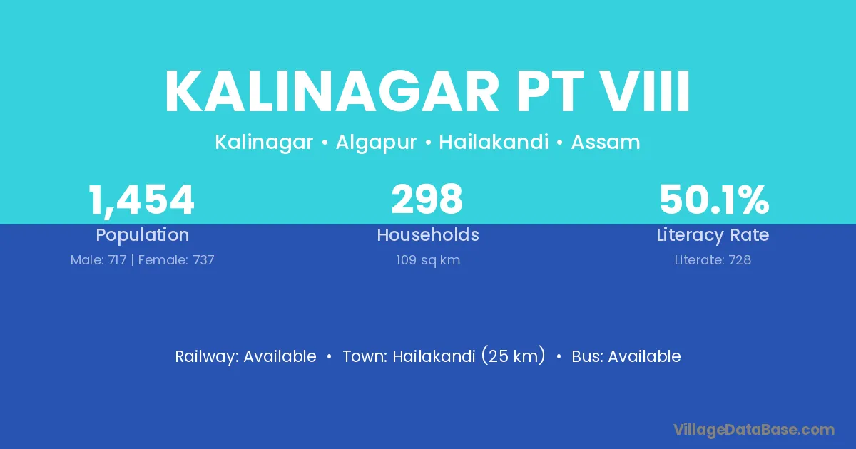 Hailakandi (25 km) is the nearest town to Kalinagar Pt Viii village for major economic activities and is located approximately 25 km away.