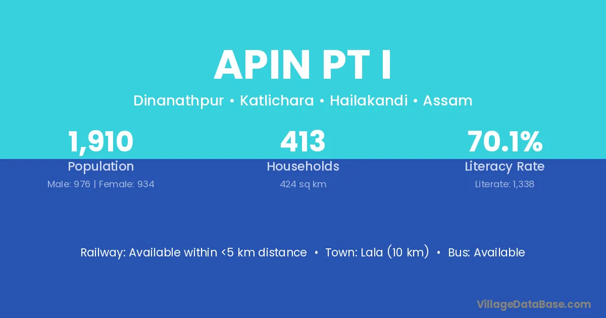Apin Pt I village is located in the Katlichara Subdivision of the Hailakandi district in Assam .