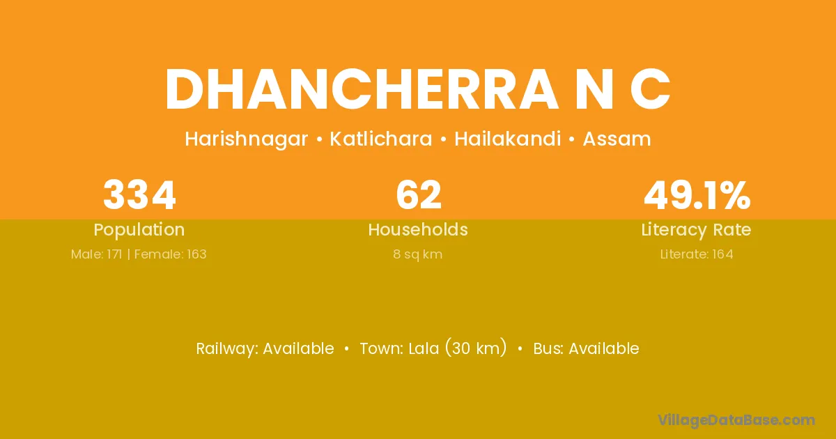 Dhancherra N C village has a total population of 334 people, of which 171 are males and 163 are females.