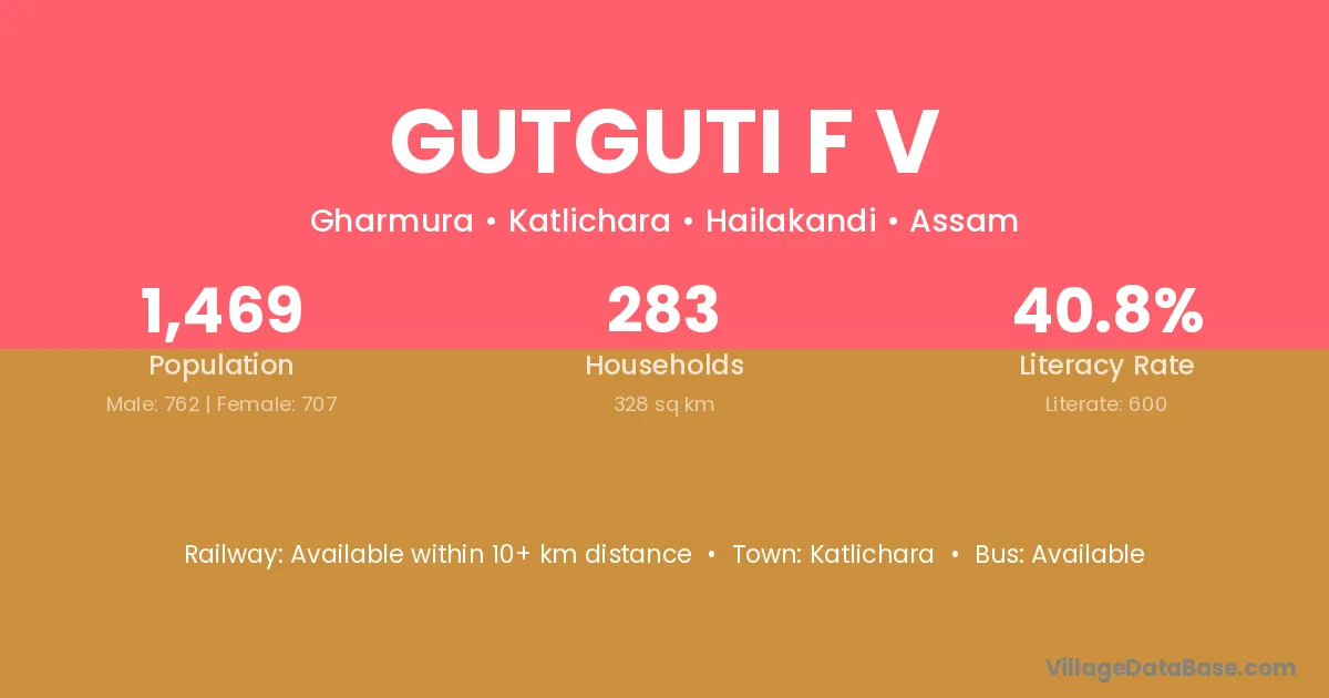 Gutguti F V village has a total population of 1,469 people, of which 762 are males and 707 are females.