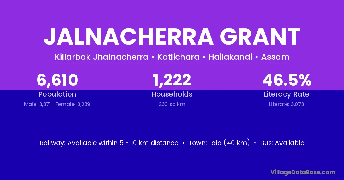 Lala (40 km) is the nearest town to Jalnacherra Grant village for major economic activities and is located approximately 40 km away.
