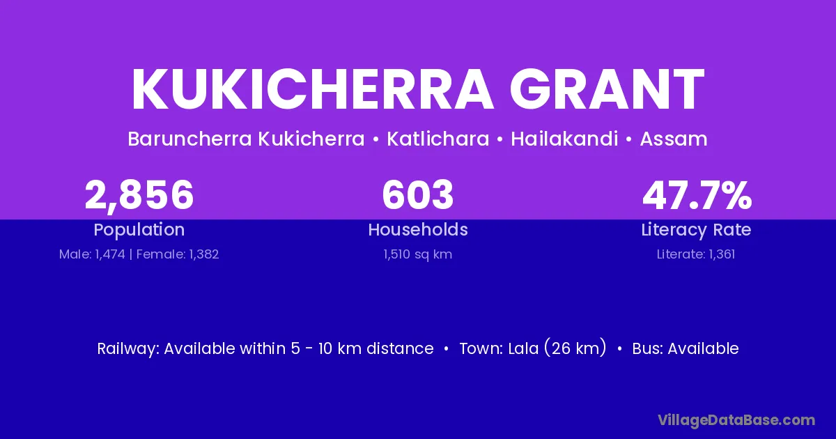 Lala (26 km) is the nearest town to Kukicherra Grant village for major economic activities and is located approximately 26 km away.