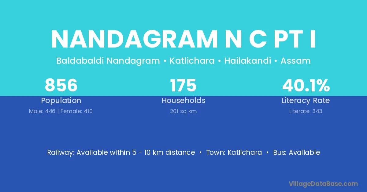 Nandagram N C Pt I village has a total population of 856 people, of which 446 are males and 410 are females.