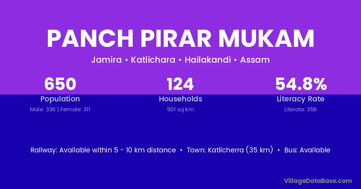 Katlicherra (35 km) is the nearest town to Panch Pirar Mukam village for major economic activities and is located approximately 35 km away.