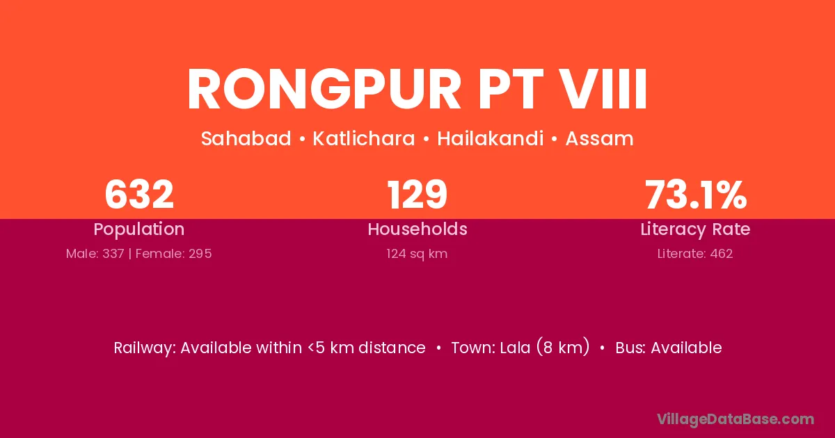 Rongpur Pt Viii village has a total population of 632 people, of which 337 are males and 295 are females.