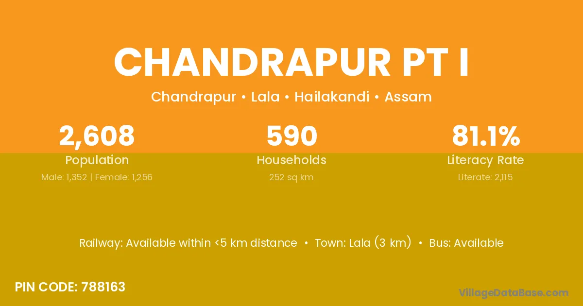 Chandrapur Pt I village is located in the Lala Subdivision of the Hailakandi district in Assam .