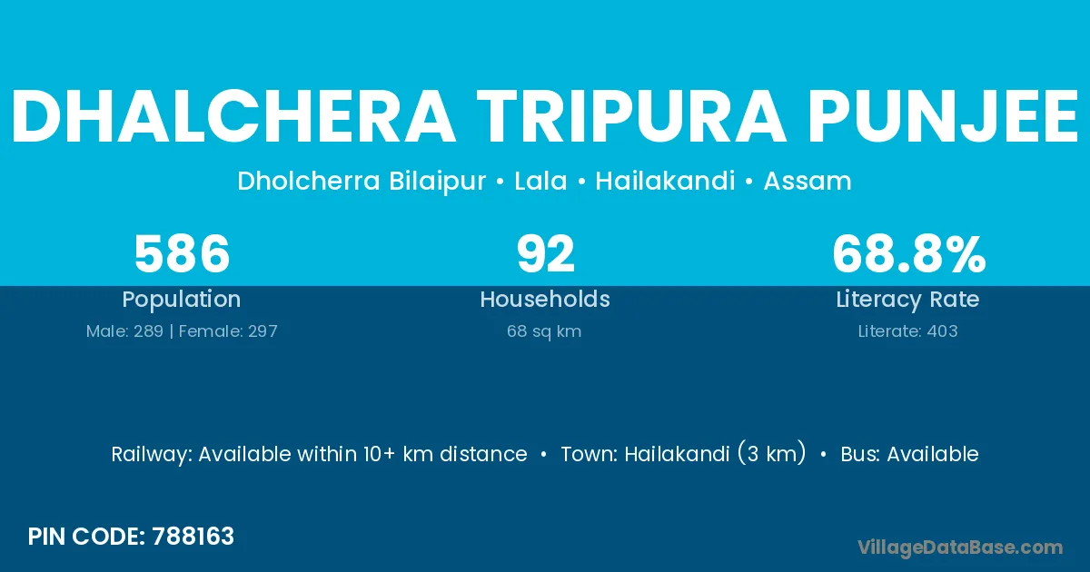 Hailakandi (3 km) is the nearest town to Dhalchera Tripura Punjee village for major economic activities and is located approximately 3 km away.