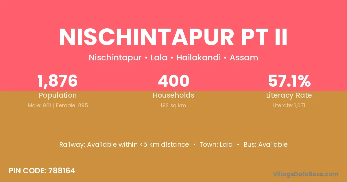 Nischintapur Pt Ii village is located in the Lala Subdivision of the Hailakandi district in Assam .