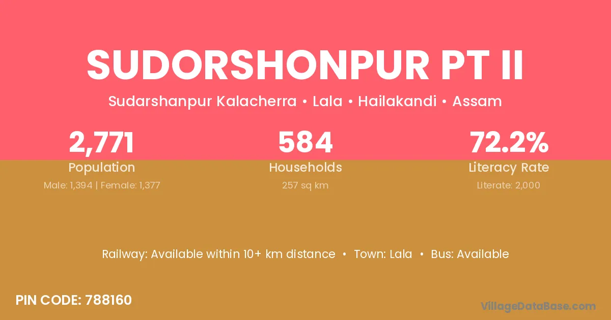 Sudorshonpur Pt Ii village has a total population of 2,771 people, of which 1,394 are males and 1,377 are females.